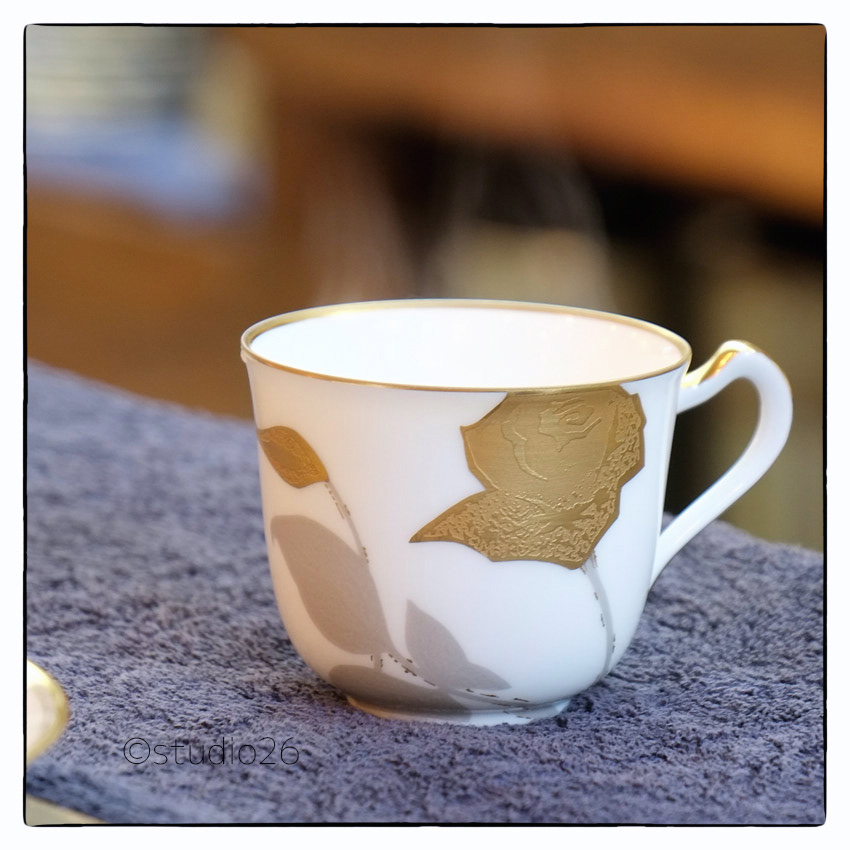 大倉陶園のコーヒーカップには、シンプルなデザインのものから、花柄やイラストが描かれたカップまで様々な種類があり、手作りの温かみが感じられる商品が多く、使い込むほどに愛着が湧いてくるようです。